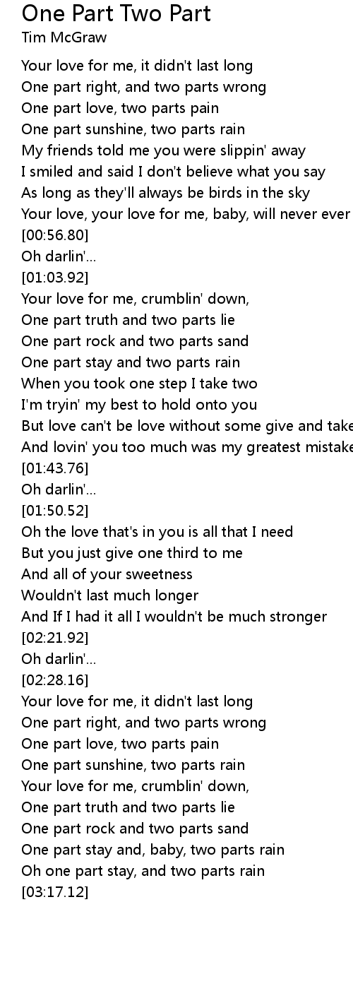 Oh one part stay, and two parts rain |