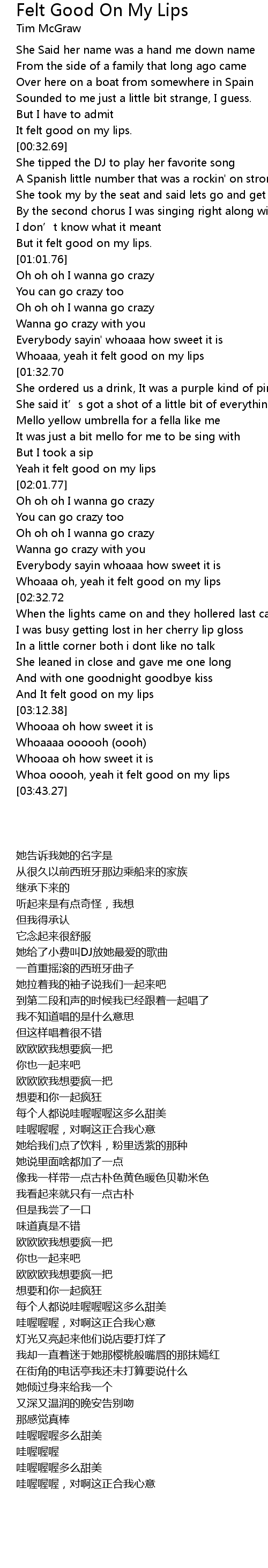 | [02:24.68] | Whoaaa oh, yeah it felt good on my lips |