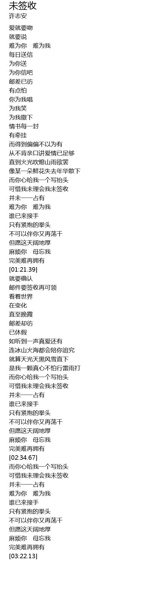 | [00:53.32] | 可惜我未理会我未签收 |
