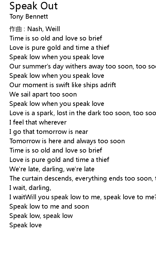 | Speak low to me and soon | |