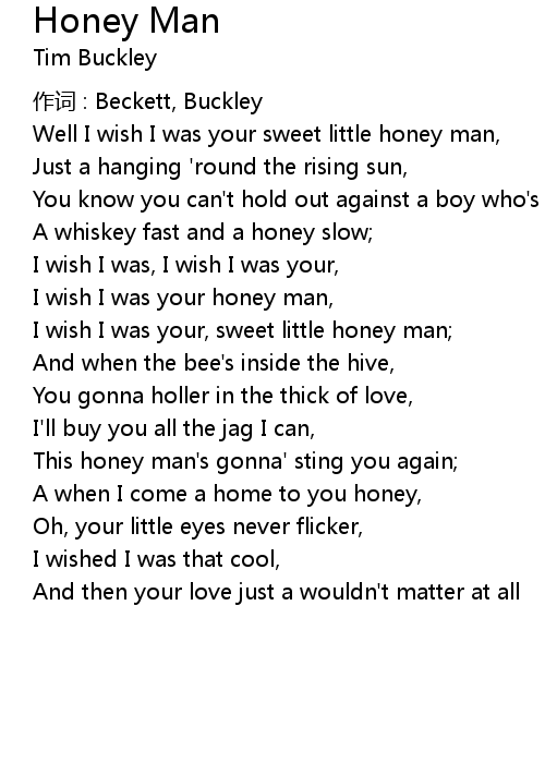 | I wish I was your honey man, | |