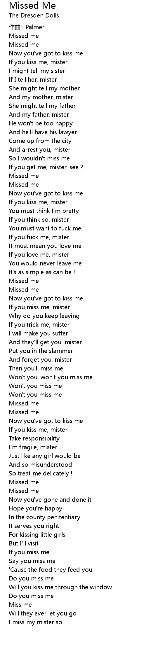 | Won' t you miss me | |
