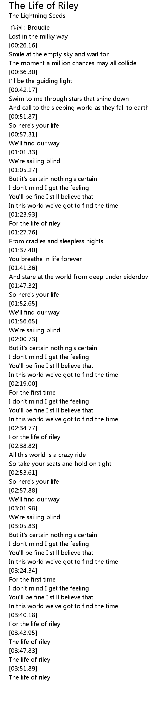 | [03:54.14] | The life of riley |