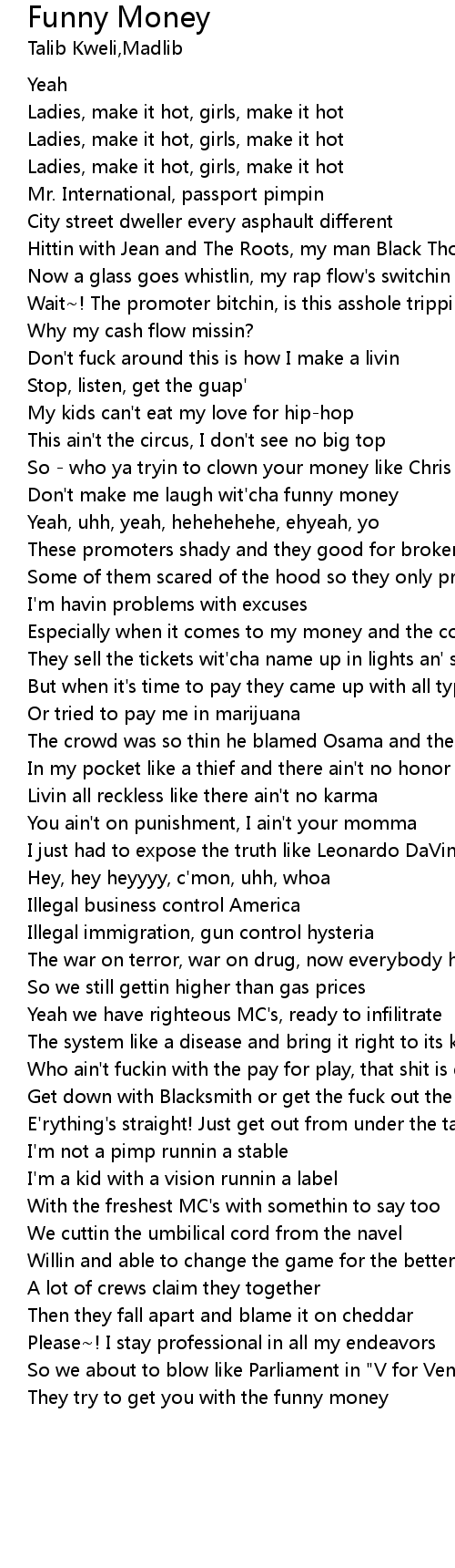 Don't make me laugh wit'cha funny money |