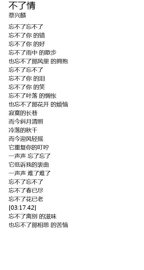 | [00:42.67] | 忘不了忘不了 |