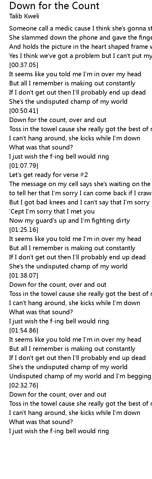 Down for the count, over and out |