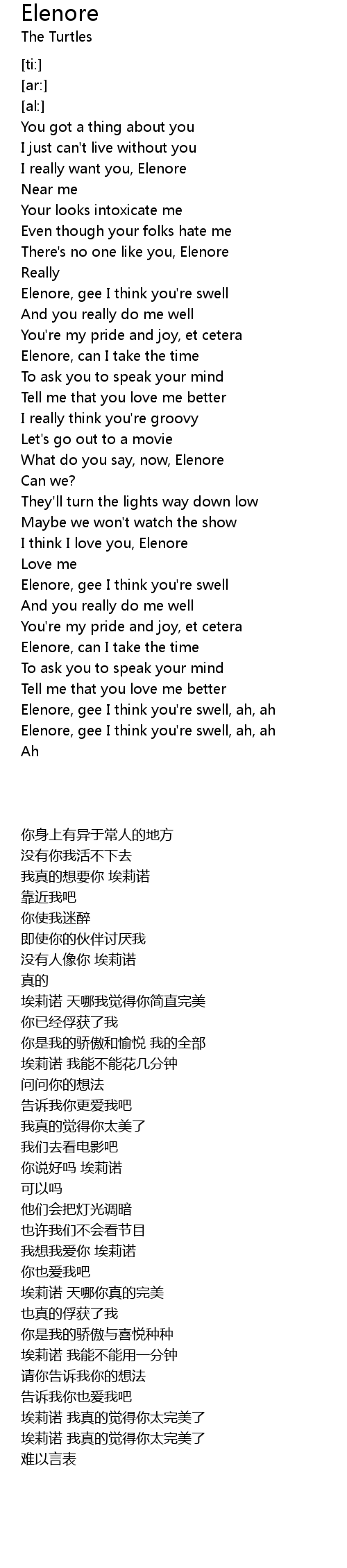 Elenore, gee I think you're swell, ah, ah |