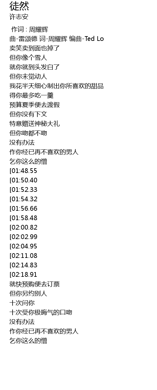 | [00:35.96] | dàn nǐ méi yǒu xià wén |