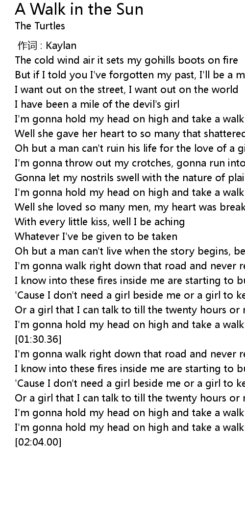 | [01:56.00] | I'm gonna hold my head on high and take a walk in the sun |