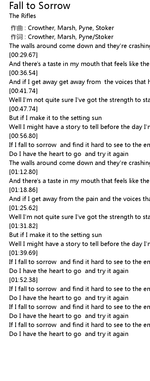 | [01:40.38] | If I fall to sorrow and find it hard to see to the end |