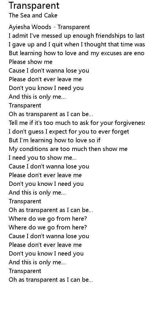| Oh as transparent as I can be |