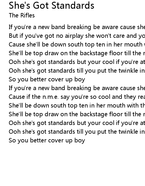Ooh she's got standards till you put the twinkle in her eye |