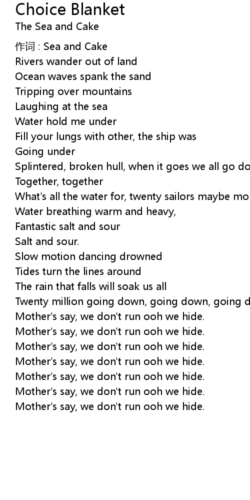 | 作词 : Sea and Cake | |