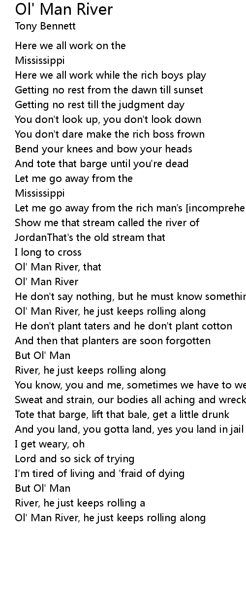 Ol' Man River, he just keeps rolling along |