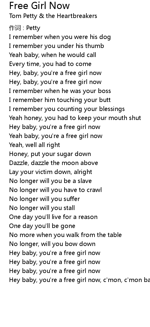 | Hey baby, you' re a free girl now | |