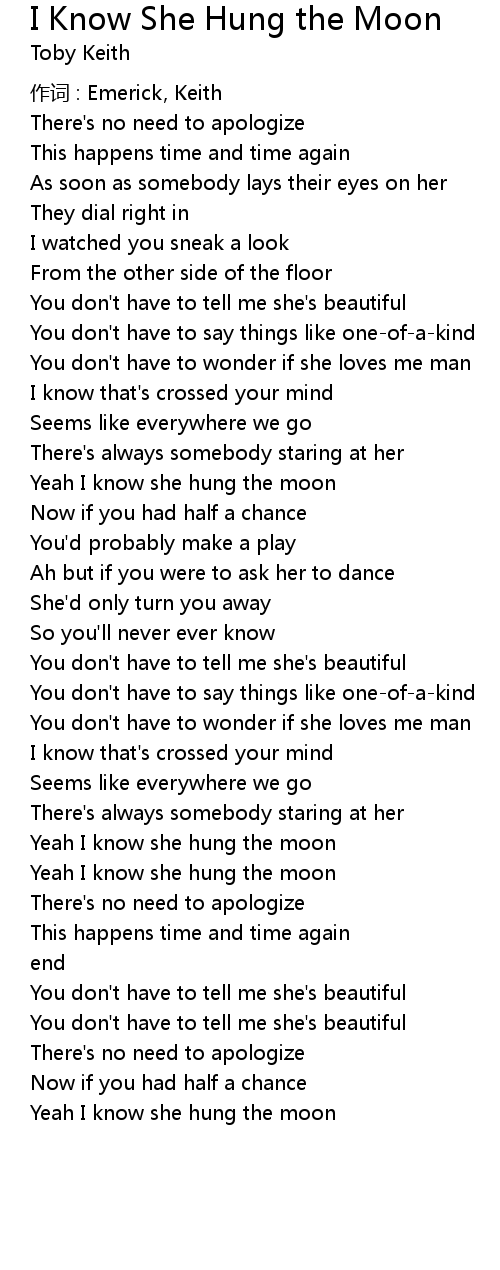 | Song | I Know She Hung the Moon |