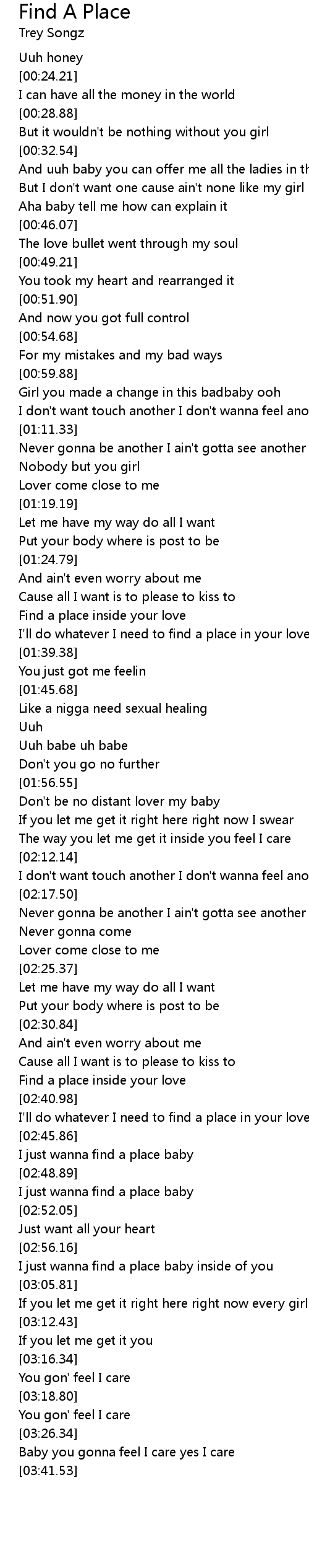 I just wanna find a place baby inside of you |