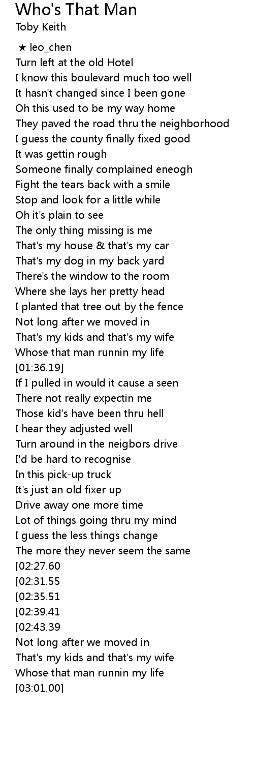 | [02:55.27] | Whose that man runnin my life |