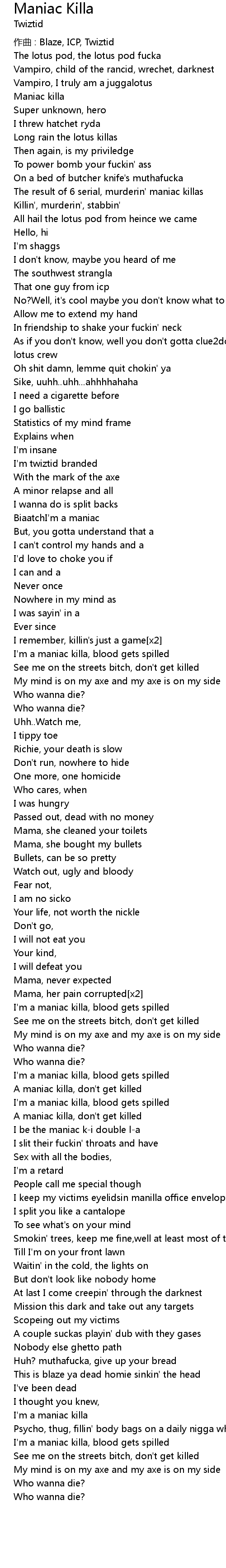 | I'm a maniac killa, blood gets spilled | |