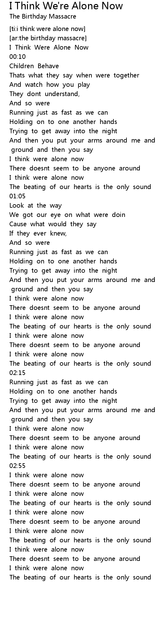 [ti:i think were alone now] |