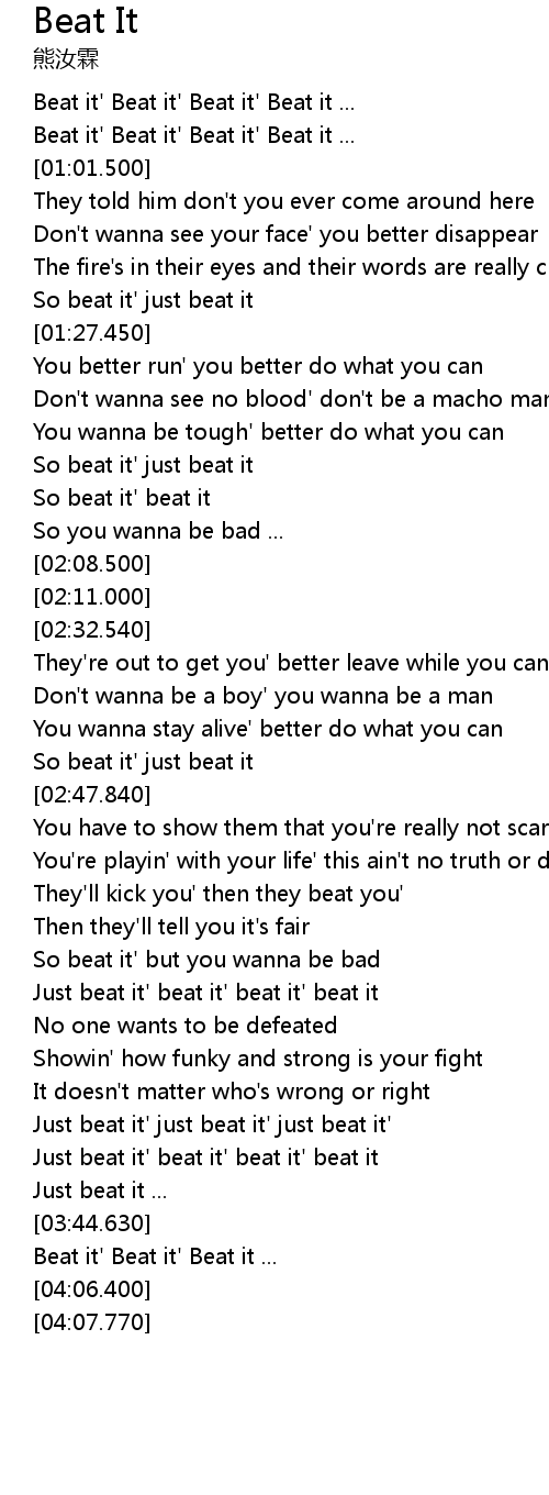 | [00:48.700] | Beat it' Beat it' Beat it' Beat it ... |