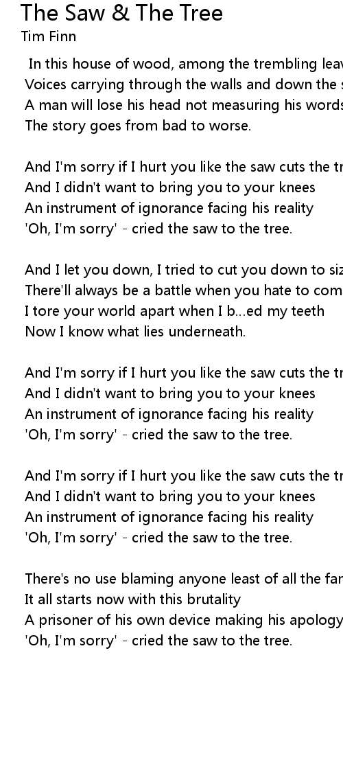 | And I' m sorry if I hurt you like the saw cuts the tree | |