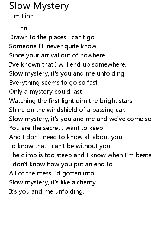 Slow mystery, it's you and me unfolding. |