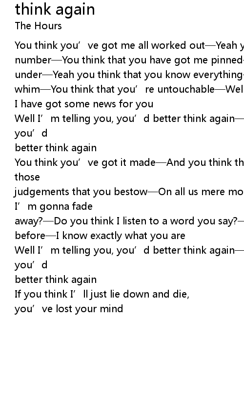 | You think you’ve got me all worked out—Yeah you think that you have got my | |
