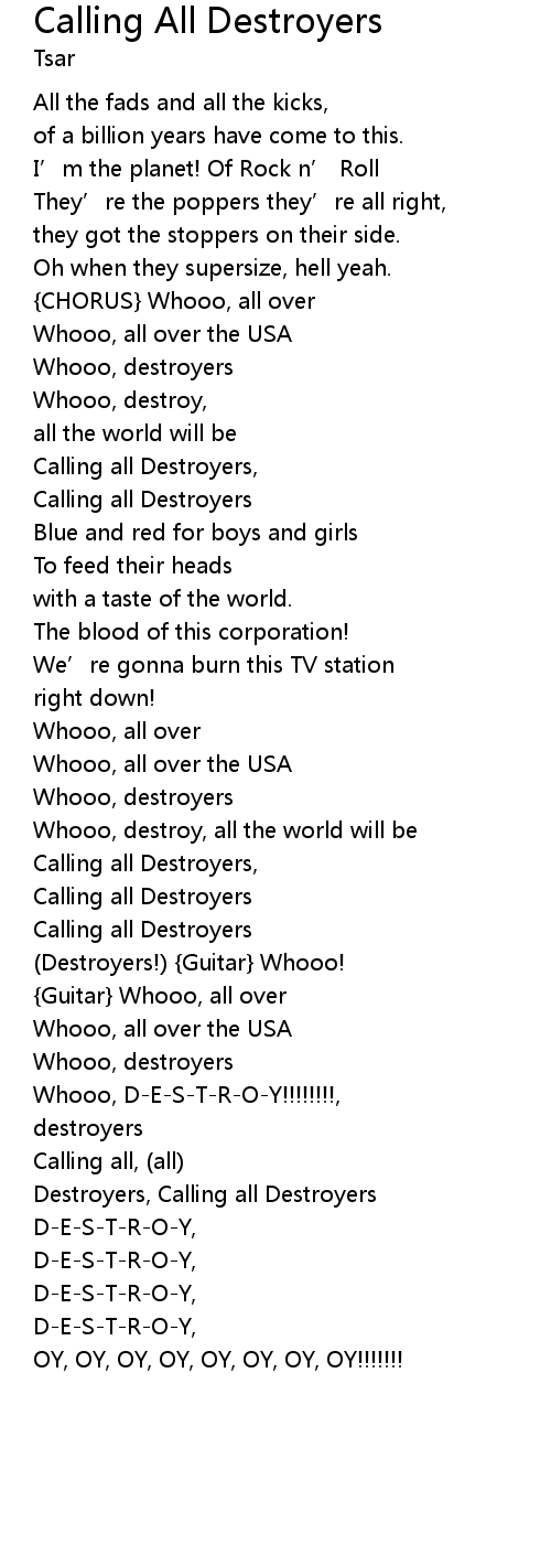 | Whooo, D-E-S-T-R-O-Y!!!!!!!!, | |