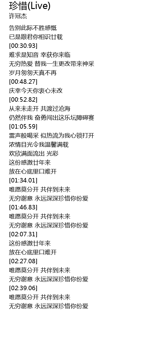 | [01:39.75] | 无穷谢意 永远深深珍惜你份爱 |