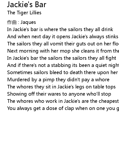 | In Jackie' s bar the sailors the sailors they all fight | |