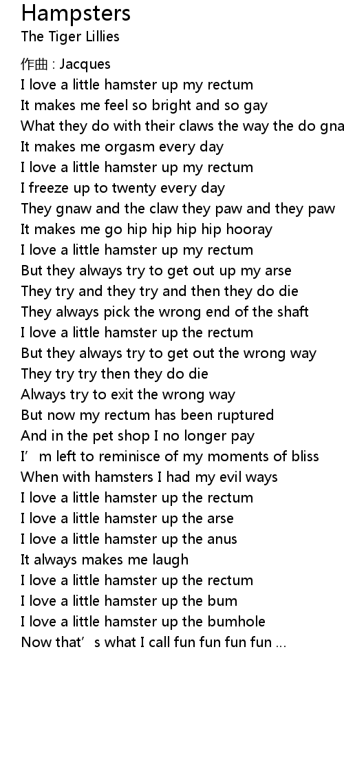 | I love a little hamster up the anus | |
