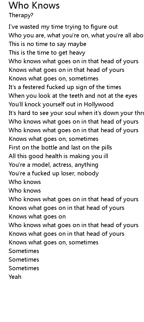 Who knows what goes on in that head of yours |