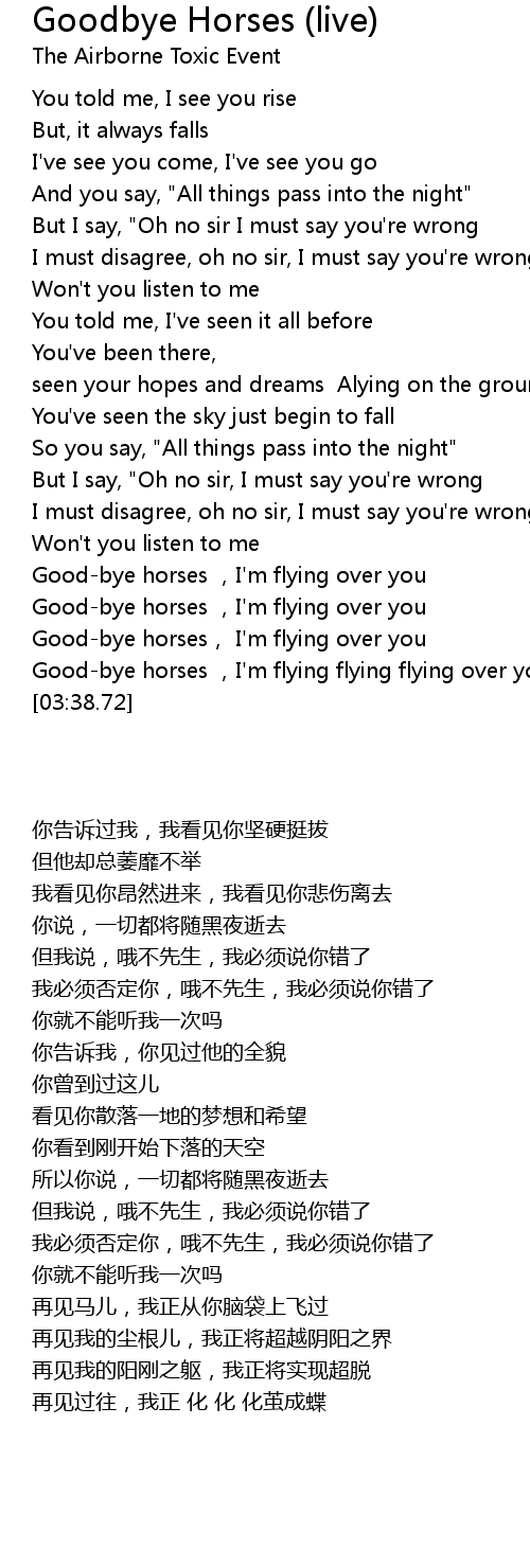 | [03:24.58] | Goodbye horses , I' m flying flying flying over you |