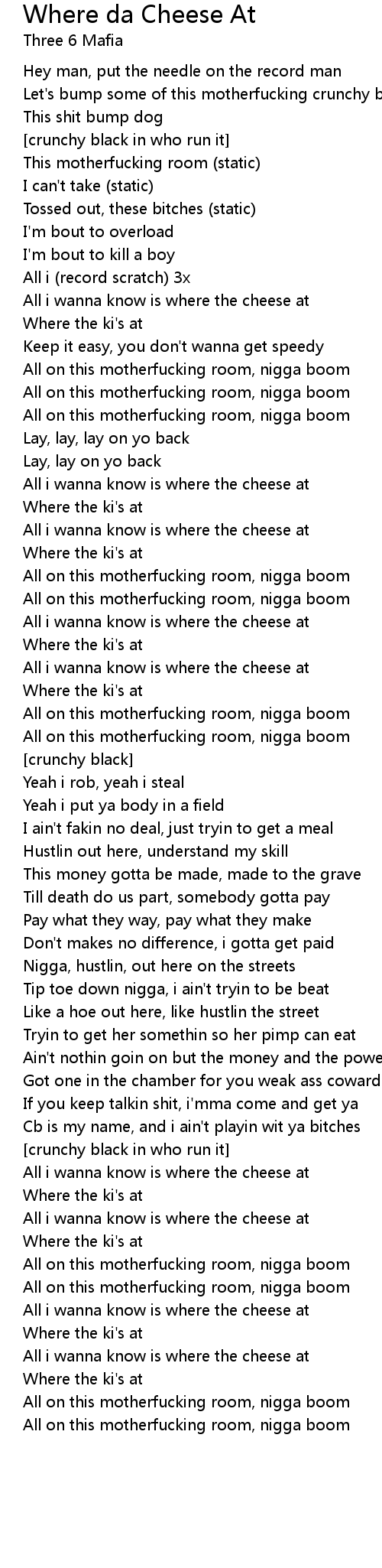 All i wanna know is where the cheese at |