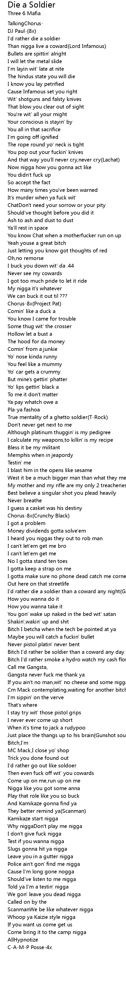 Bitch I'd rather be soldier than a coward any day |