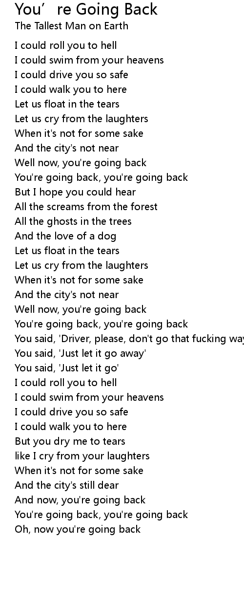 You're going back, you're going back |