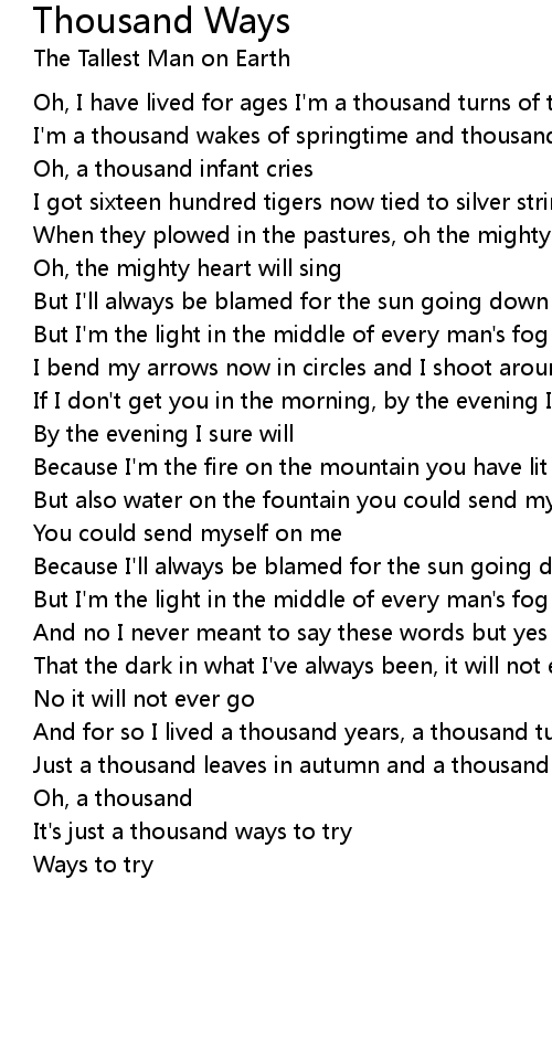 Oh, I have lived for ages I'm a thousand turns of tides |