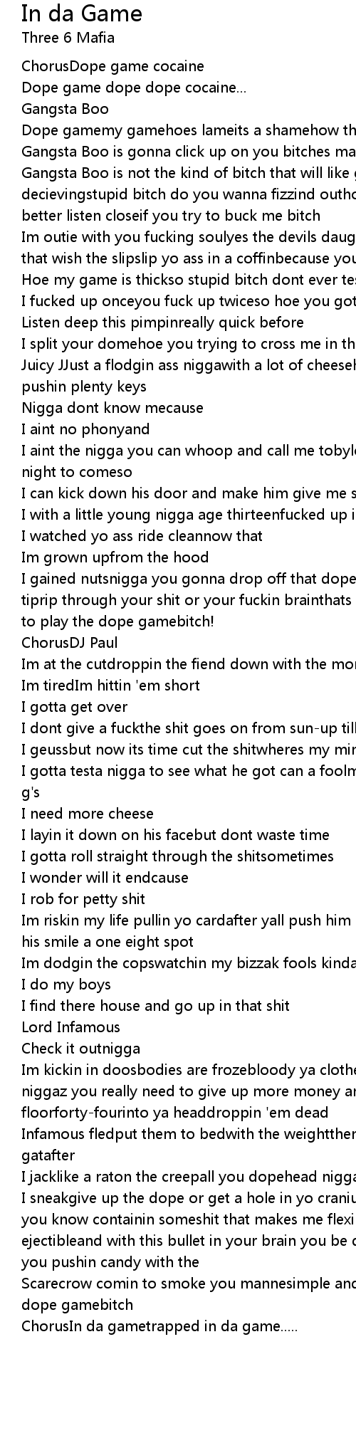 Gangsta Boo is not the kind of bitch that will like get punked outlooks are so decievingstupid bitch do you wanna fizzind outhow can ya bust a playaplayahataz better listen closeif you try to buck me bitch |