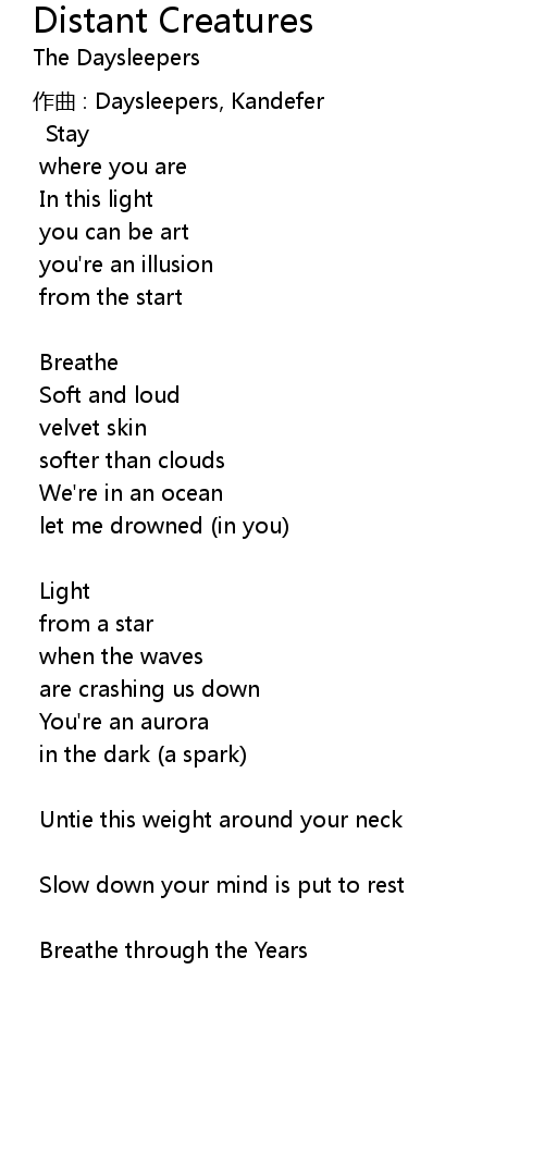 | Song | Distant Creatures |