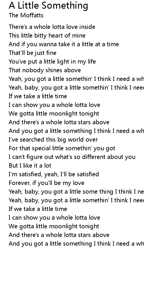 Yeah, you got a little somethin' I think I need a whole lot of |