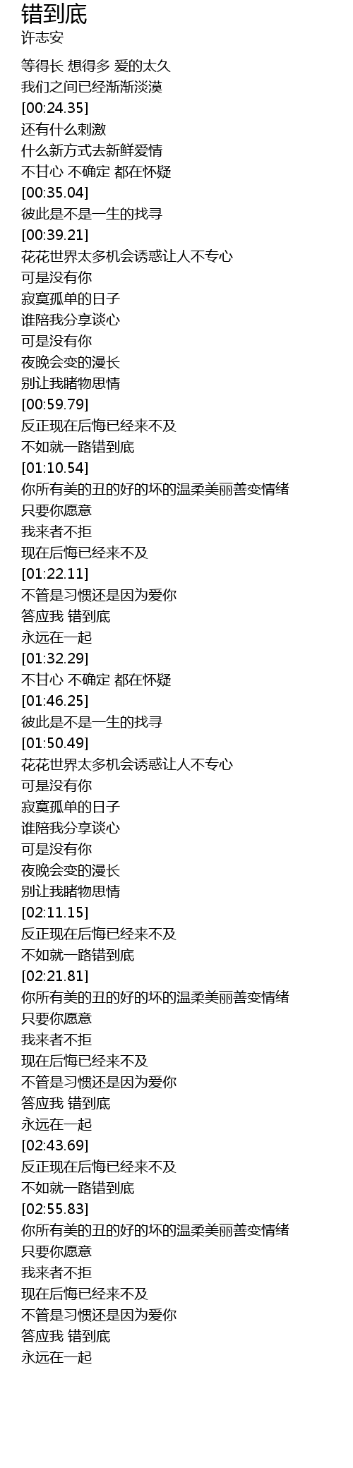 | [02:52.39] | bù rú jiù yí lù cuò dào dǐ |