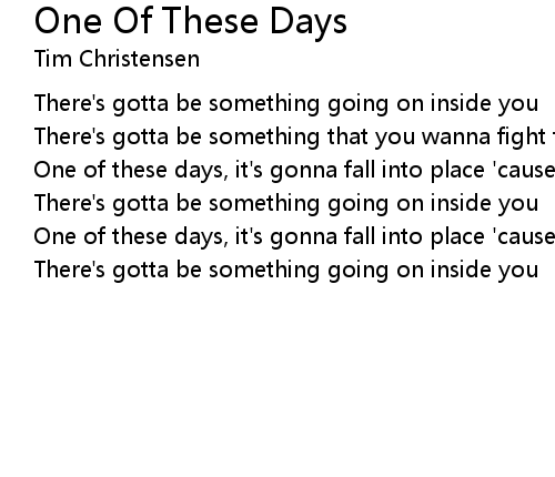 | One of these days, it's gonna fall into place 'cause I know | |