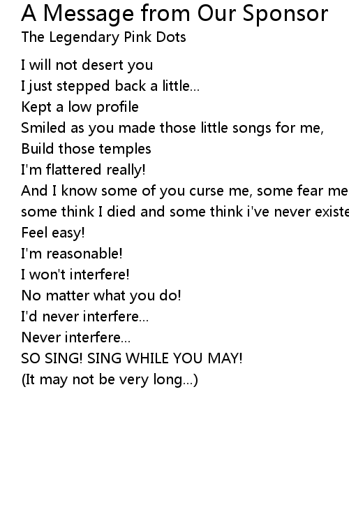 | Song | A Message from Our Sponsor |