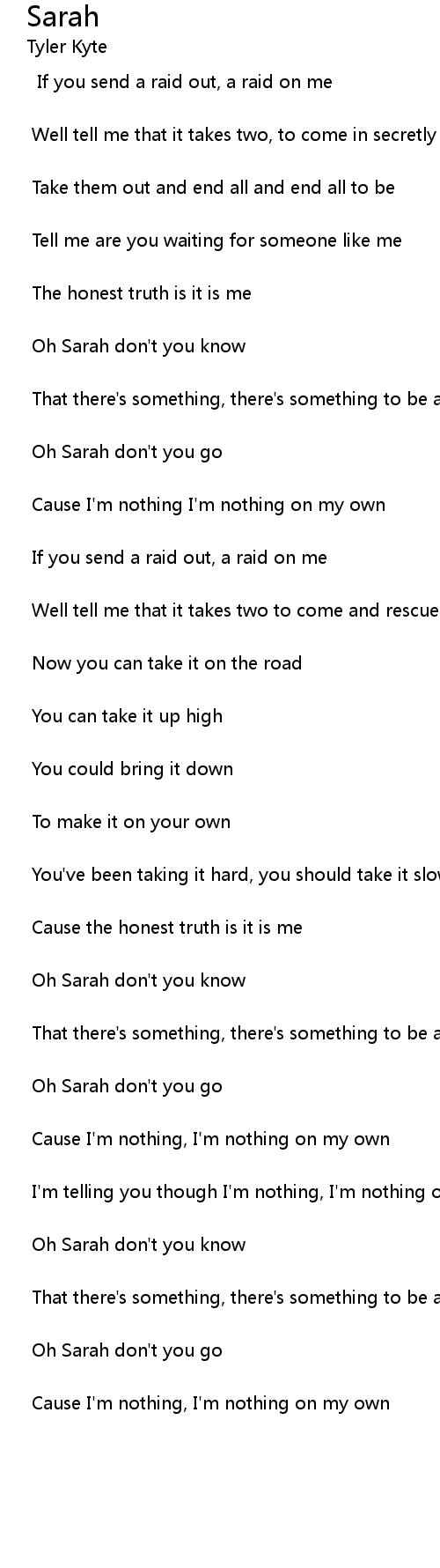 Oh Sarah don't you know |
