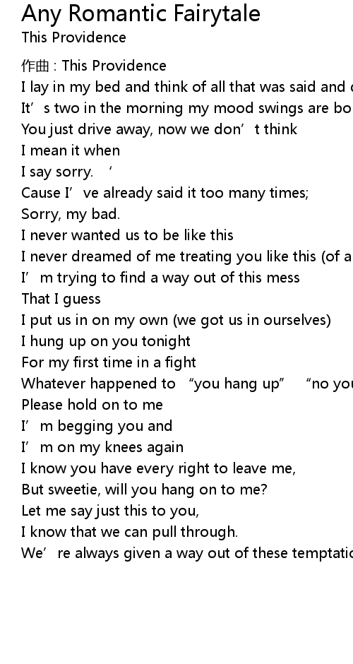 | Song | Any Romantic Fairytale |