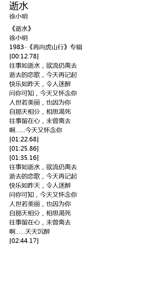 | [01:38.21] | 往事如逝水,欲流仍离去 |