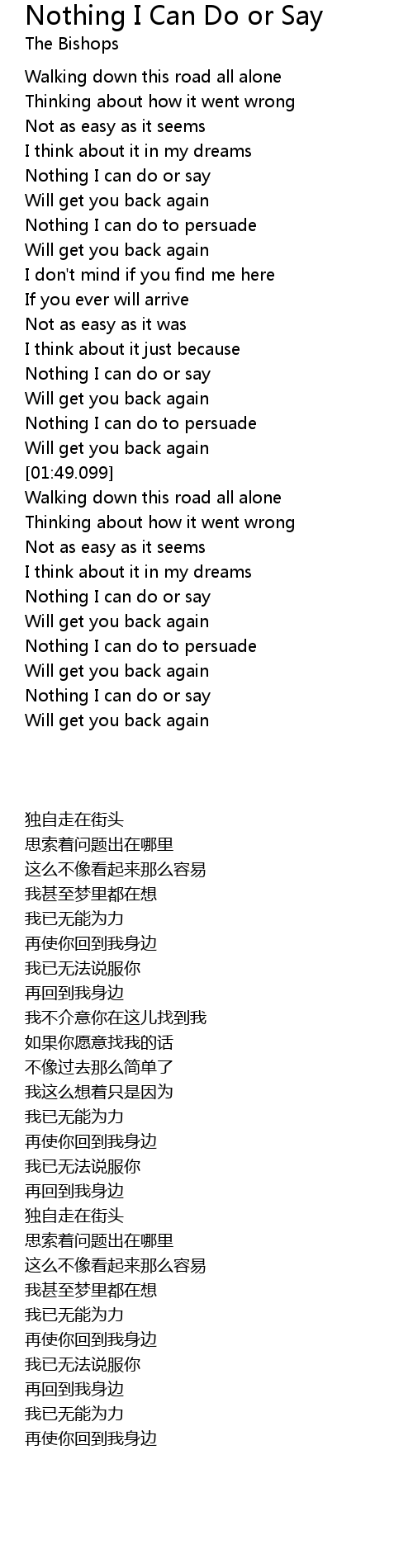 Nothing I can do or say |