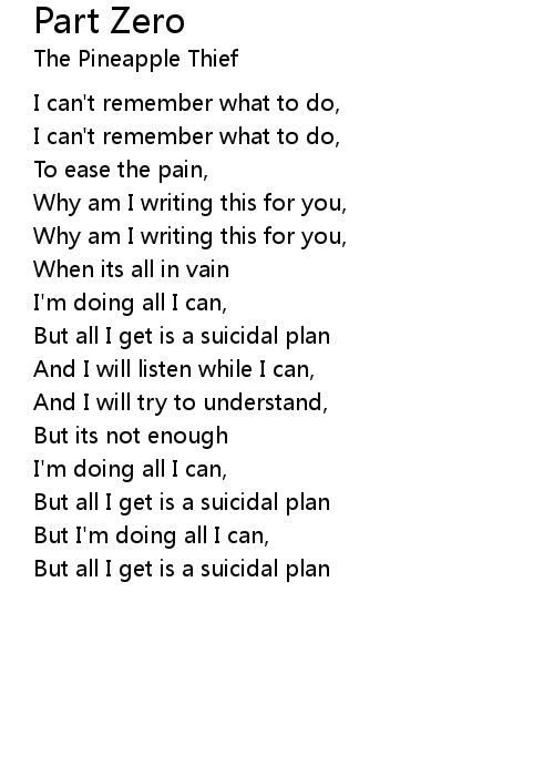 | But all I get is a suicidal plan |
