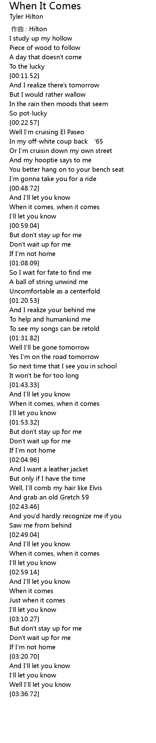 | [01:35.81] | Yes I' m on the road tomorrow |